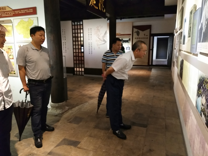 参观完毕后,全体党员分支部在故居中栋的前堂“大夫第”及门楼秋瑾手书的“槐庭”匾额前合影留念。